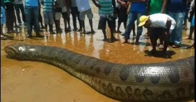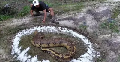 男子使用鹽來捕抓大蟒蛇,鏡頭記錄了捕抓過程