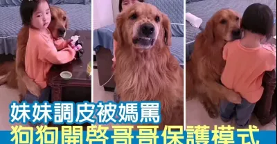妹妹調皮被媽罵 狗狗開啟哥哥保護模式:她是我罩的!