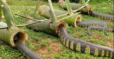 男子自製捕蛇陷阱,蛇一不小心就觸動了機關