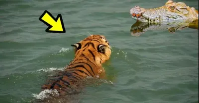 老虎遇見鱷魚,鏡頭拍下了全過程
