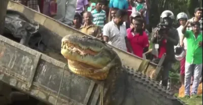 村民把一條17英尺的大鱷魚放回河裡 。。!
