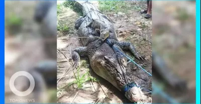 印尼馬穆朱縣巨型鱷魚被村民剝光皮