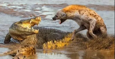 鱷魚大戰鬣狗,鱷魚根本不夠看