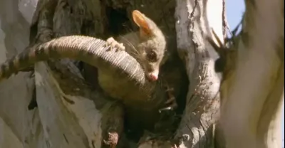 負鼠為了保護幼崽盡然和巨蜥對上了