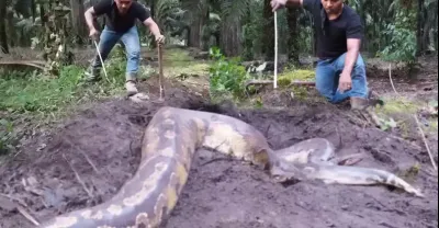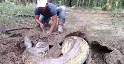 在男子大土地上發現大蟒蛇,鏡頭拍下了全過程