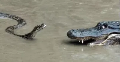 蟒蛇大戰鱷魚,鏡頭拍下了全過程