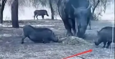 野生動物園 - 野豬侵犯犀牛領地遭秒殺(快到像閃電)!