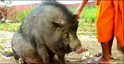 寺廟裡跑進一頭大野豬,白吃白喝懶著不走,還要僧人每天伺候它!