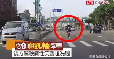 騎重機耍帥「翹孤輪」摔車 後方駕駛魔性笑聲超洗腦...