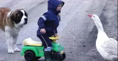 狗狗被大鵝欺負,小主人立刻上前幫忙,接下來請憋住不要笑