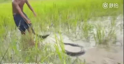 男子玩弄大蟒蛇,鏡頭拍下全過程