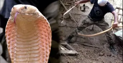 抓蛇人雖然經驗豐富 但也差點被這兇猛的眼鏡蛇咬傷