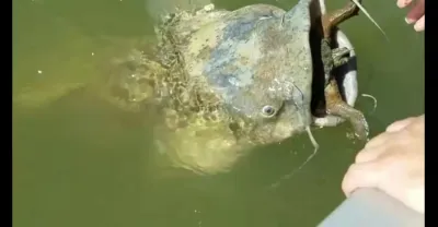 巨大鲶魚與烏龜都遇到貴人了 不然兩者會一起上西天