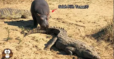 一隻年輕的河馬大膽在玩弄鱷魚,鏡頭拍下了全過程