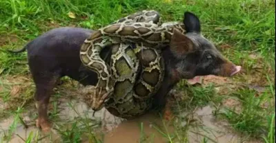 小野豬被蟒蛇纏住身體,眼看就要涼了