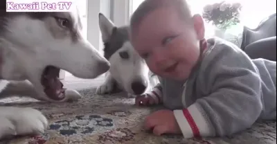 第一次遇到小主人的二哈反應非常有趣,場面實在太逗了