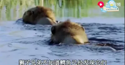 過河的雄獅被鱷魚咬住,鱷魚拚命的死亡翻滾,獅子後悔也來不急瞭