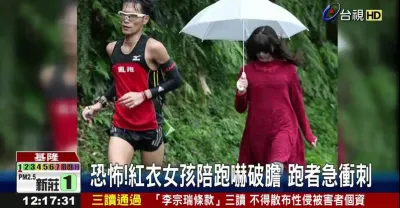 恐.怖!紅衣女孩陪跑嚇_破.膽 跑者急衝_刺