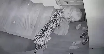 花豹 私闖民宅 還欺負 正在 睡覺的狗狗