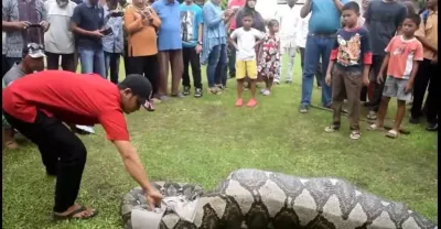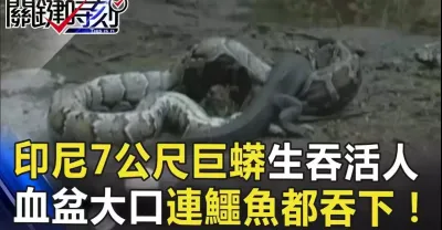 印尼7公尺巨蟒生吞活人 血盆大口連鱷魚都吞的下!