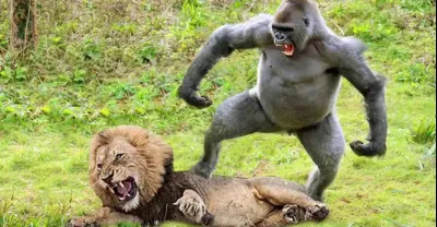 獅子狩獵大猩猩寶寶遭到反擊,鏡頭拍下全過程