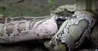 蟒蛇生吞鱷魚