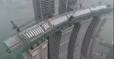 中國建了一座橫向摩天大樓,底部用四座大樓支撐,把老外都驚到了