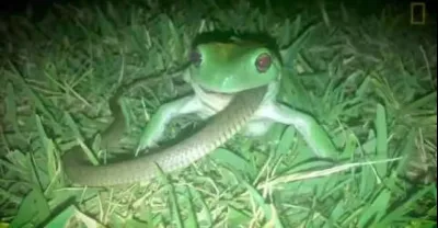 驚悚畫面:青蛙吞蛇你見過了嗎?
