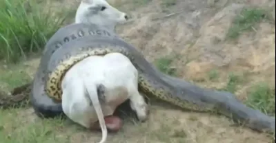 老牛被蟒蛇拖走,大媽勇敢相救!