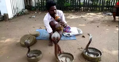 南印度 玩蛇人精彩的一幕,下一秒精彩了!