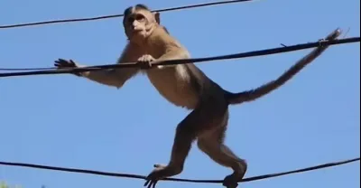 心碎!一隻猴子爬到高壓線上,不料一腳踩斷了電線,結果悲劇了!