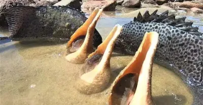 趕海意外碰上「響螺金鼓陣」,幾十年漁民都沒見過,趕緊拍攝留念