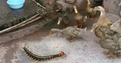 雞吃蜈蚣理所當然,當鴨子看見蜈蚣會有什麼反應?結果會發生什麼?