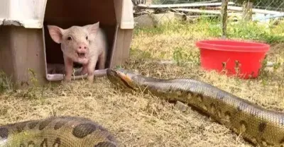 巨蟒 跑進 豬圈 這豬凶多吉少了