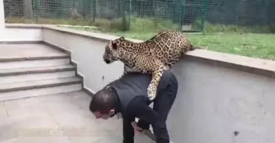豹子偷襲飼養員,老虎上去就是個大耳光:你把他吃了我咋辦?