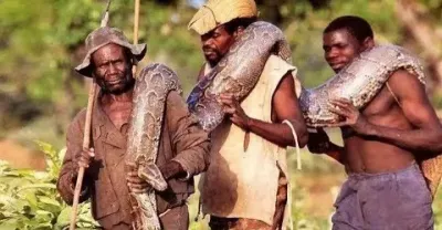 非洲土著不會種菜,冒著生命危險靠捕殺蟒蛇為生!