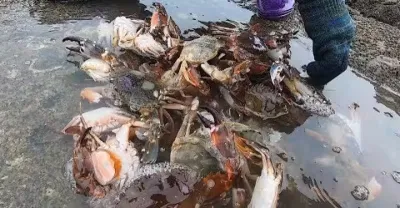 雷鳴暴雨天,豬豬趁著海邊沒人狂撿壹桶螃蟹,回家做醉蟹好下酒