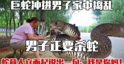 巨蛇衝進男子家中搗亂,男子正要殺蛇,蛇竟人立而起說出一句:我是你媽!