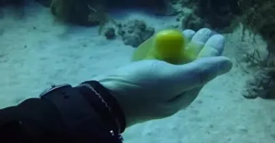 老外在海底敲開一個雞蛋,一條魚突然游過來,意外的一幕發生了!