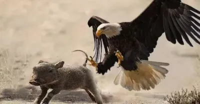 老鷹上演抓野豬,抓住後卻帶不走,下秒一定憋住別笑!
