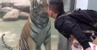 男子到動物園遊玩,隔著玻璃吻了一下老虎,結果意外的事情發生了