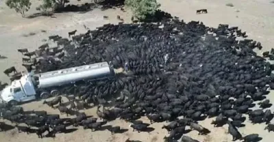 500頭野牛即將渴死,一輛水車出現之後,場面讓人出乎意料
