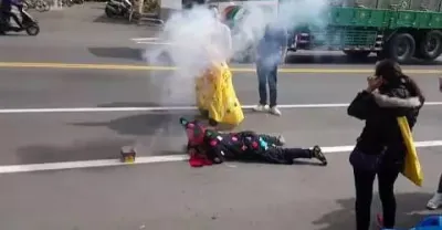 [開天眼濟公師父乩童嗨過頭搞笑坐躺在馬路上玩沖天炮怕怕!][濟公師父乩童踩炮顯神威!]