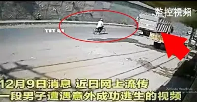 意外逃生!大貨車從天而降 監控拍下驚險場面!