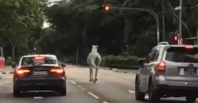 白馬在大馬路上跑,還闖紅燈呢!