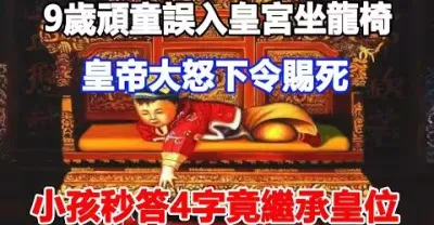 9歲頑童誤入皇宮坐龍椅,皇帝大怒下令賜死,小孩秒答4字竟成為下一任皇帝