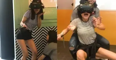 韓國淘氣弟弟帶美女姐姐去體驗VR,嚇倒姐姐腳軟了