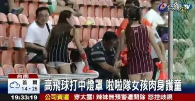 高飛球打中燈罩美女啦啦隊女孩肉身護童