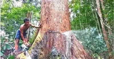 國外男子砍樹時,意外發現大樹不停流淚,難道這棵樹成精了?
