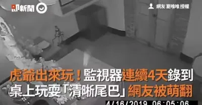 虎爺出來玩!監視器連續4天錄到 桌上玩耍「清晰尾巴」網友被萌翻